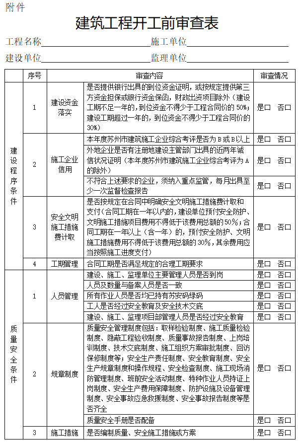 以上審查內(nèi)容詳見《建筑工程開工前審查表》(附件)。
