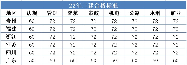2021-2022年二級建造師合格標準變動(已公布地區(qū))