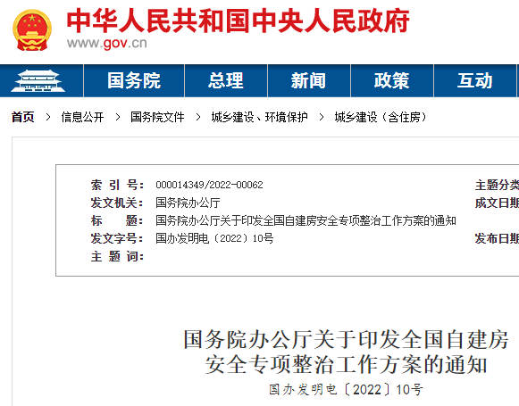國務院辦公廳關于印發(fā)全國自建房安全專項整治工作方案的通知