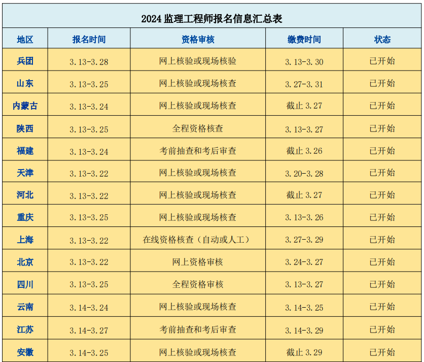 關(guān)注!32地2024監(jiān)理工程師均在報名中……