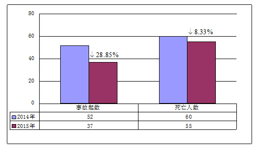 圖1 2015年7月事故起數(shù)和死亡人數(shù)與2014年同期對(duì)比