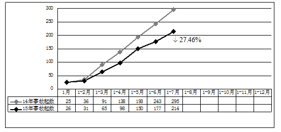 圖2 2015年1-7月事故起數(shù)與2014年同期對(duì)比