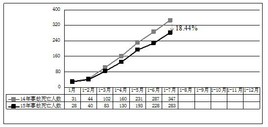 圖3 2015年1-7月事故死亡人數(shù)與2014年同期對(duì)比