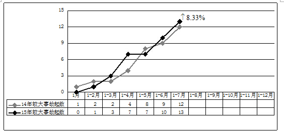 圖5 2015年1-7月較大事故起數(shù)與2014年同期對(duì)比