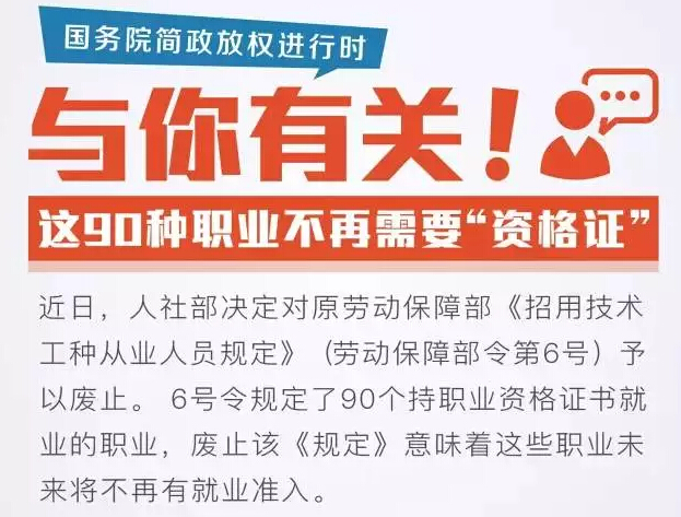 人社部:即日起90種職業(yè)不再需要“資格證”