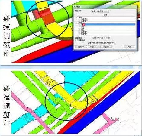 施工管理人員結合BIM三維建模過程中對設計圖紙進行校核和深化;對建筑、結構、機電安裝各專業圖紙進行碰撞審核,從而在施工前解決圖紙的錯漏問題。對機電安裝進行管線綜合,保證精準的管線綜合布置。再結合三維碰撞檢查,實現零碰撞。