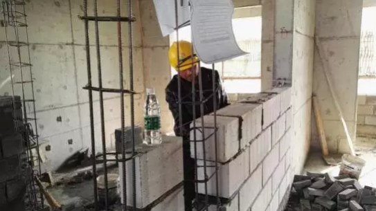 由于施工場地狹小,現場堆料困難。總包根據分包提出的需求來進行進料,需求多少,給多少。為應對分包材料浪費的問題,總包對分包采取了砌筑廢料的懲罰制度,這使得有些分包在砌筑時不按規范要求進行砌筑。再加上現場進度緊張,二次結構整體砌筑質量未完全達到理想效果。