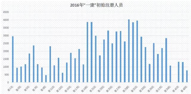 2016年,住建部共發布43批一級建造師初始注冊人員名單,共計89594人。僅2016、2017兩年時間,一級建造師初始注冊人數總和就超過15萬。