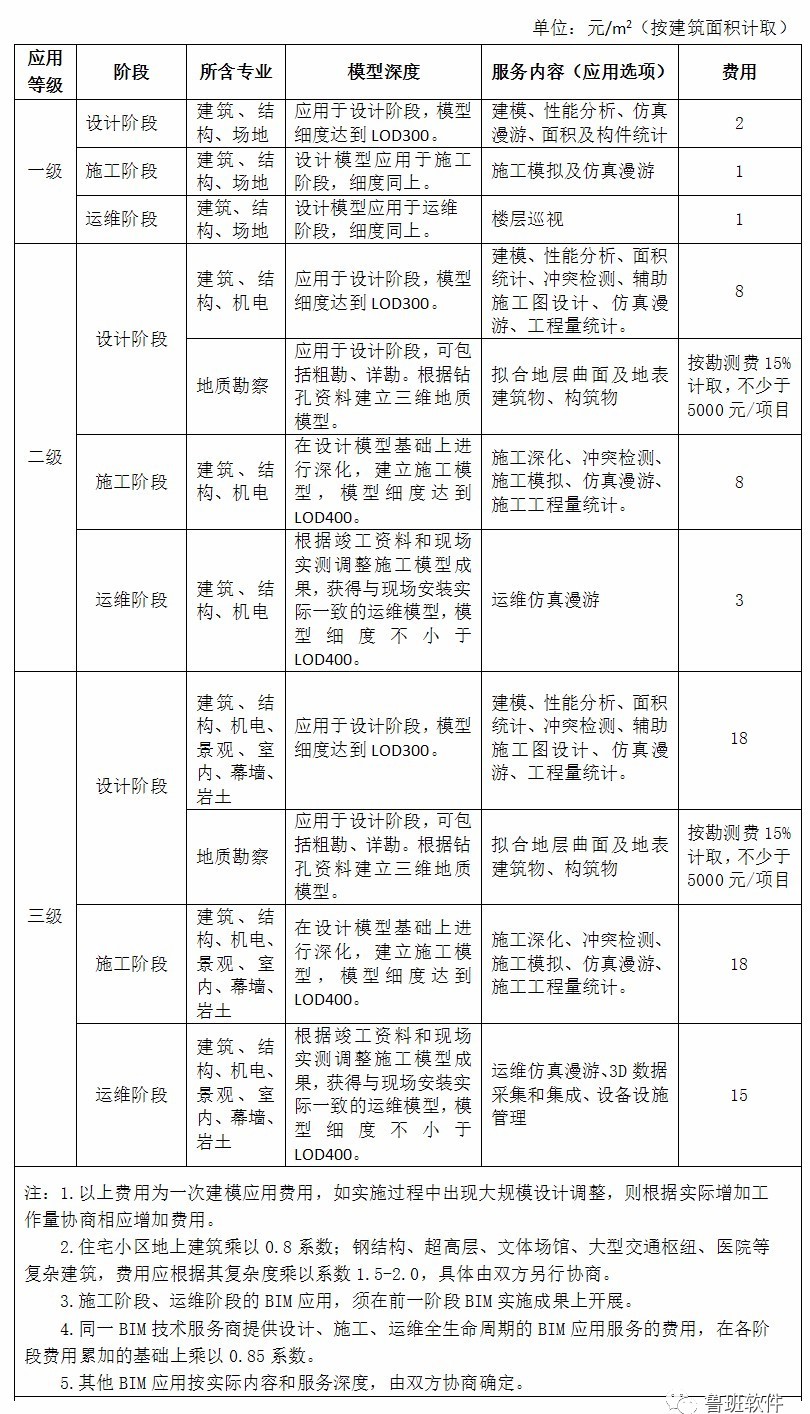 2017年9月,浙江省住房和城鄉(xiāng)建設(shè)廳出臺《浙江省建筑信息模型(BIM)技術(shù)推廣應(yīng)用費用計價參考依據(jù)》,根據(jù)項目類型、模型深度及應(yīng)用等級設(shè)置了收費標準。