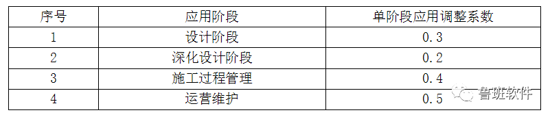 表3 廣東省BIM技術(shù)應(yīng)用階段調(diào)整系數(shù)