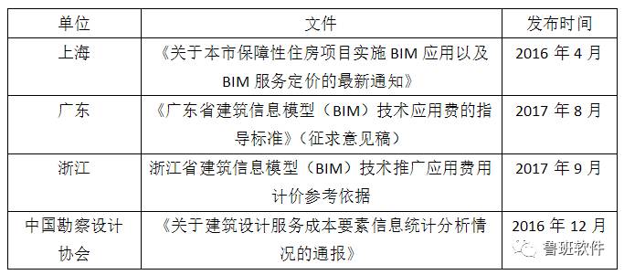 表1 國內(nèi)BIM收費標準相關(guān)政策