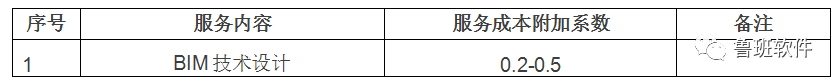 表7 建筑設(shè)計BIM服務(wù)成本附加系數(shù)信息表