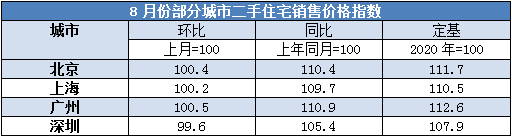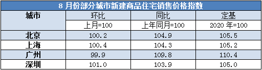 據(jù)測算,8月份,一線城市新建商品住宅銷售價格環(huán)比上漲0.3%,漲幅比上月回落0.1個百分點。其中,北京、上海和深圳環(huán)比分別上漲0.2%、0.4%和1.0%,廣州由上月上漲0.2%轉(zhuǎn)為下降0.1%。