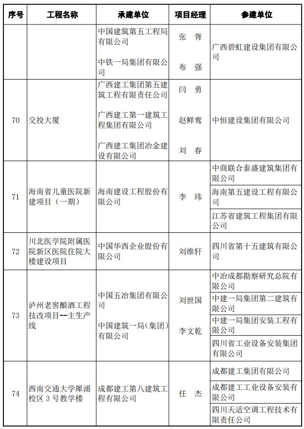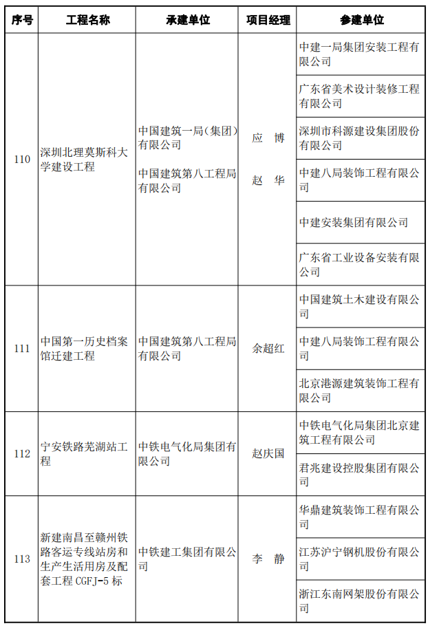 2020~2021年度第二批中國建設(shè)工程魯班獎(國家優(yōu)質(zhì)工程)入選名單