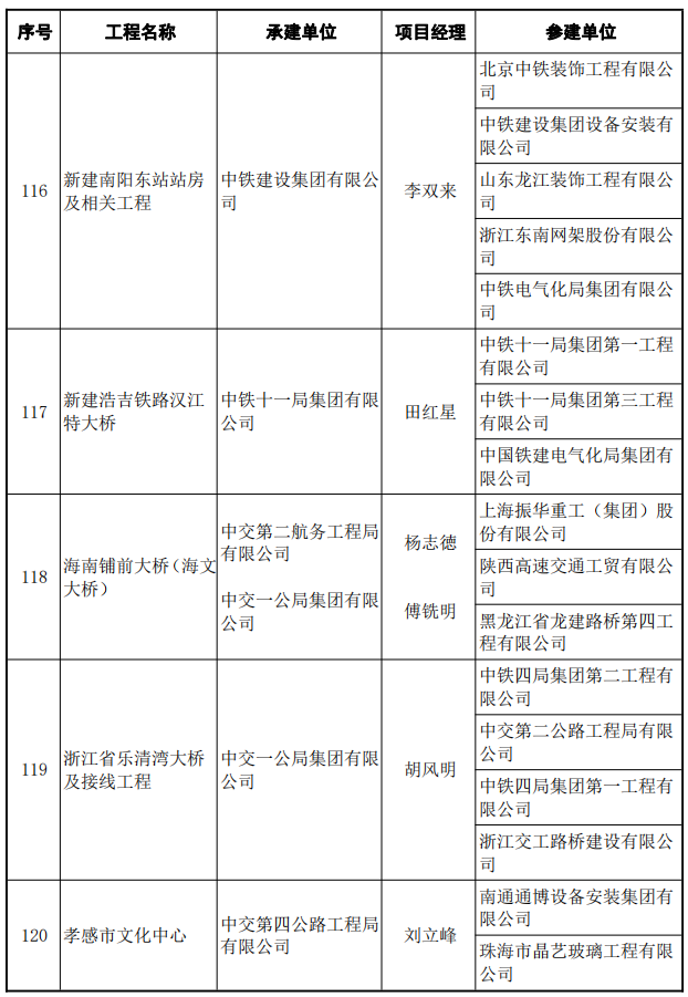 中國建筑業(yè)協(xié)會公示了2020~2021年度第二批中國建設(shè)工程魯班獎(國家優(yōu)質(zhì)工程)入選名單,共120項工程入選。