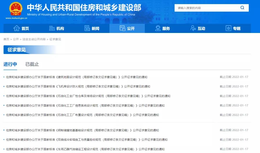 12月22日,住建部發(fā)布8項(xiàng)國家標(biāo)準(zhǔn)的征求意見稿,意見征求截止日期為2022年1月17日。具體如下: